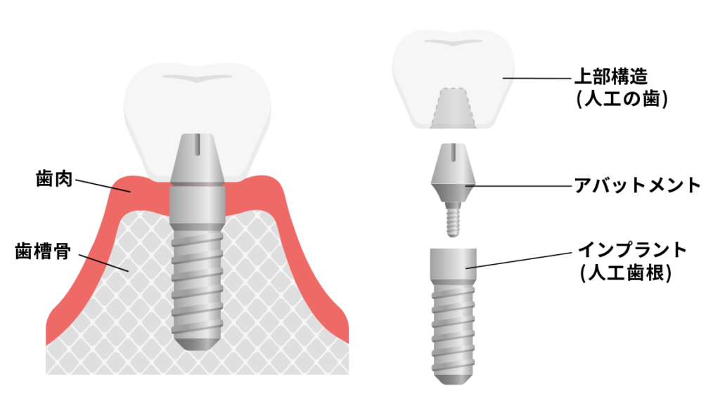 独立した人工の歯根を埋入するので、他の歯に負担がかからない。