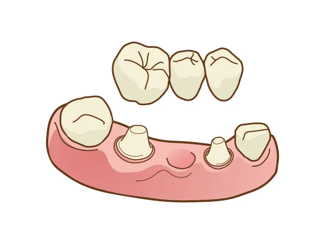両隣の健康な歯を削り支えにするので、負担がかかる。